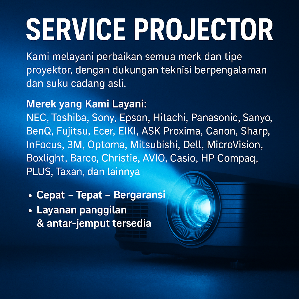 Apakah Anda mengalami masalah dengan proyektor Epson seperti tidak menyala, tampilan buram, atau overheating? Jangan khawatir, kami hadir sebagai solusi terbaik untuk service proyektor Epson Anda. Dengan dukungan teknisi berpengalaman dan peralatan lengkap, kami siap menangani berbagai jenis kerusakan proyektor secara cepat dan bergaransi.